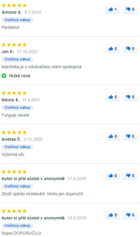 K negativům řadíme poněkud vyšší hlučnost a komplikovanější montáž zařízení. Jinak řečeno, odsávačka se skládá z poměrně velkého počtu samostatných částí, které je před použitím potřeba pracně složit a následně rozložit. Minusem je také to, že žádný z těchto komponentů nelze mýt v myčce nádobí, ale výhradně ručně. Všechny uvedené nedokonalosti kompenzuje pořizovací cena, kterou v poměru ke kvalitě a výkonu hodnotíme jako vysloveně nízkou.