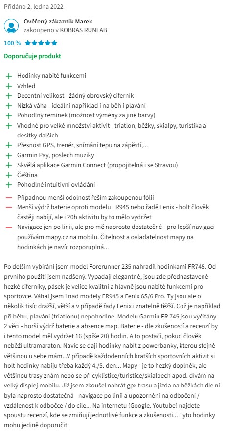 Pokud máte rádi dobrý pocit z plnohodnotného běhu, hodinky od Garminu vám přesně řeknou, jaký byl váš výkon. Chytré hodinky vám nabízejí řadu sportovních režimů – cyklistika, plavání, triatlon, lyžování nebo běh. V nabídce je opravdu mnoho režimů. Díky technologiím, snímačům a senzorům hodinky měří váš tep, vzdálenost, kroky – to vše s maximální přesností. Uživatelé si chválí přesnost GPS a přizpůsobivost hodinek v reálném čase. Hodinky přesně změří objem vašeho tréninku.