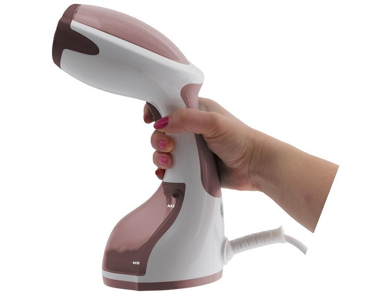 Ruční napařovač oděvů, parní výkon 20 g/min., příkon 1 200 W, objem nádržky na vodu 260 ml, hmotnost 950 g, vertikální + horizontální napařování.