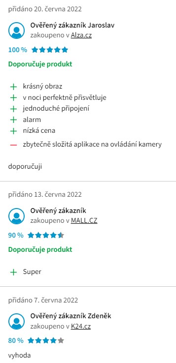 Jedním z hlavních důvodů, proč nás tato bezpečnostní kamera na dům zaujala, jsou pozitivní recenze samotných zákazníků. Spotřebitelé hodnotí kladně především poměr ceny a kvality. Chválí také kvalitu rozlišení a velmi dobrých výsledků dosahuje noční vidění, ačkoli dosah IR přísvitu je slabší, než avizuje výrobce. Plusem je také nenáročná montáž a velmi jednoduché ovládání prostřednictvím aplikace Tapo, kde máte všechna nastavení velmi intuitivně po ruce.